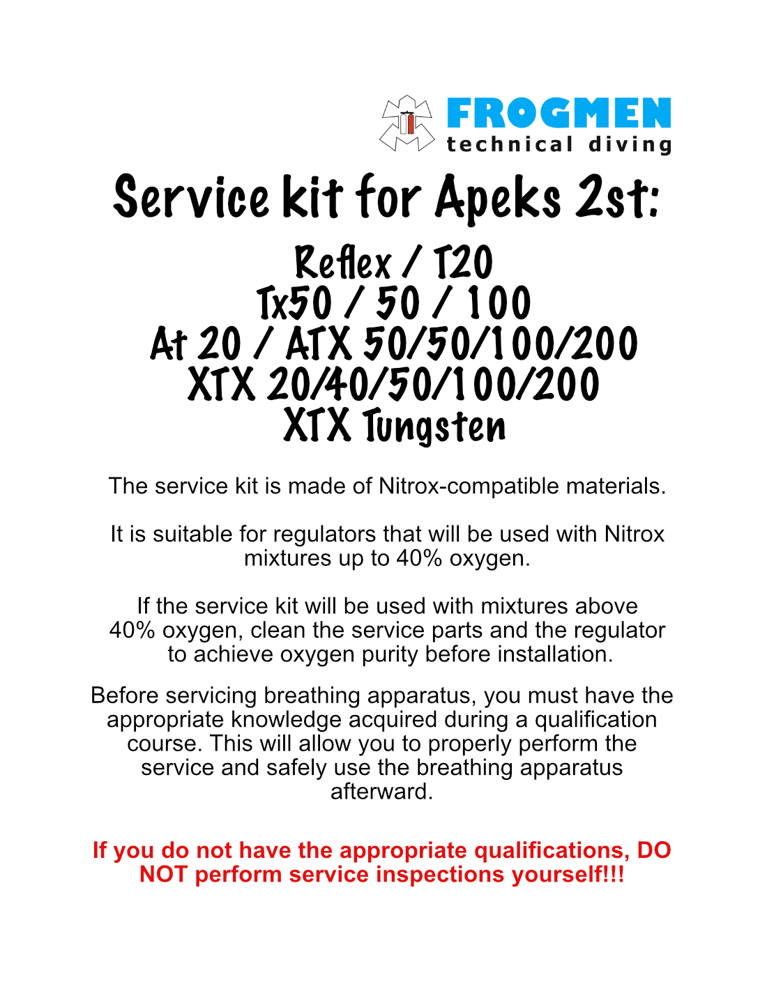 Apeks AP2019 - Ersatz Service-Kit für die zweite Stufe. Enthält O-Ringe und Ventilsitz. Nitrox-kompatibel bis 40 %.
