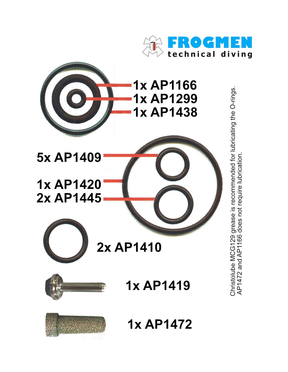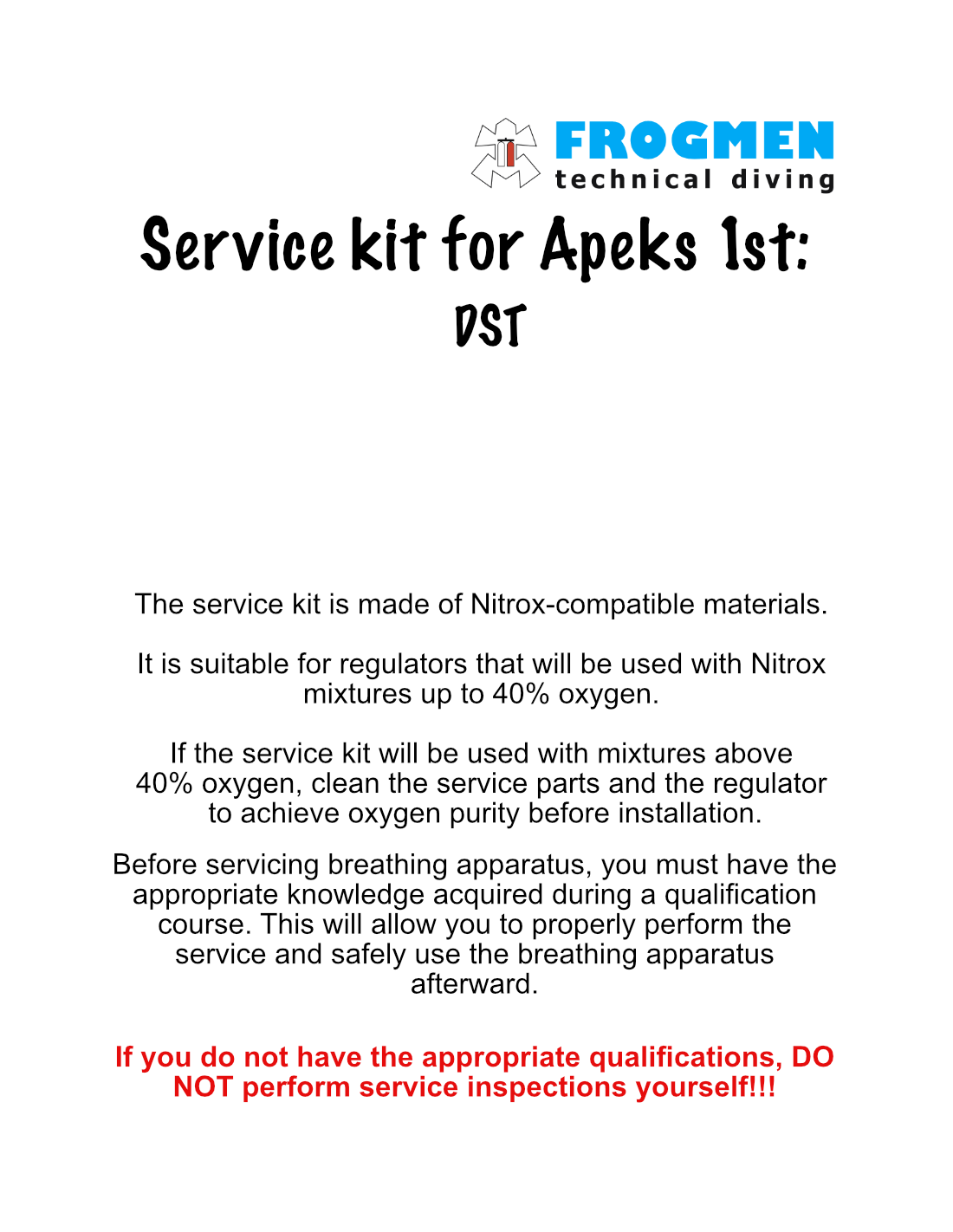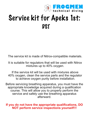 Apeks Service Kit - AP0241 DST - Ersatz für die erste Stufe. Enthält O-Ringe, gesinterte Filter, Membranen und Ventilsitz. Kompatibel mit Apeks-Modellen und Nitrox bis zu 40 %.