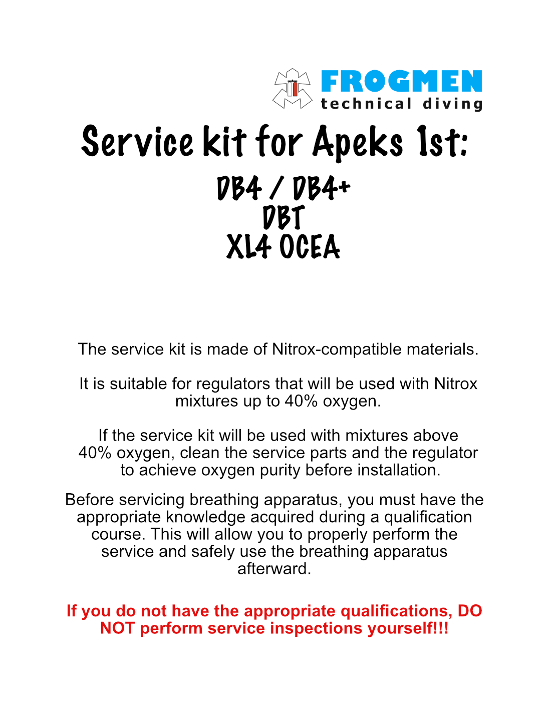 Apeks Service Kit - DB4 / DB4+ / DBT / XL4 OCEA - Ersatz für die erste Stufe. Enthält O-Ringe, gesinterte Filter, Membranen und Ventilsitz. Kompatibel mit Apeks-Modellen und Nitrox bis zu 40 %.